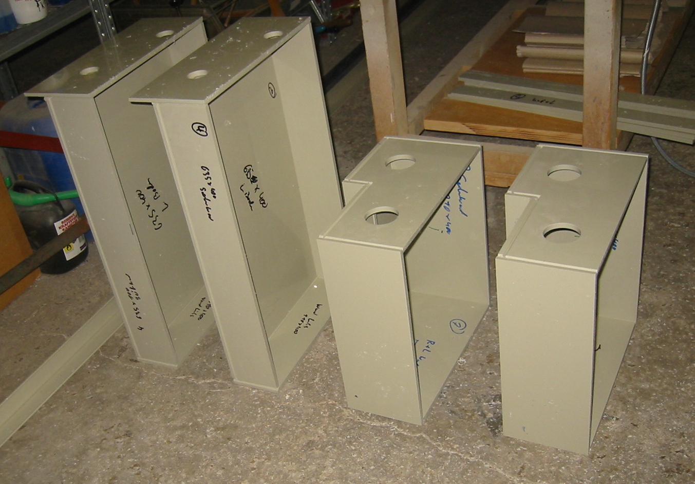 Auffangwannen und Pumpenbehälter für Lacktestanlage. Schweißkonstruktion aus 10mm Polypropylen.