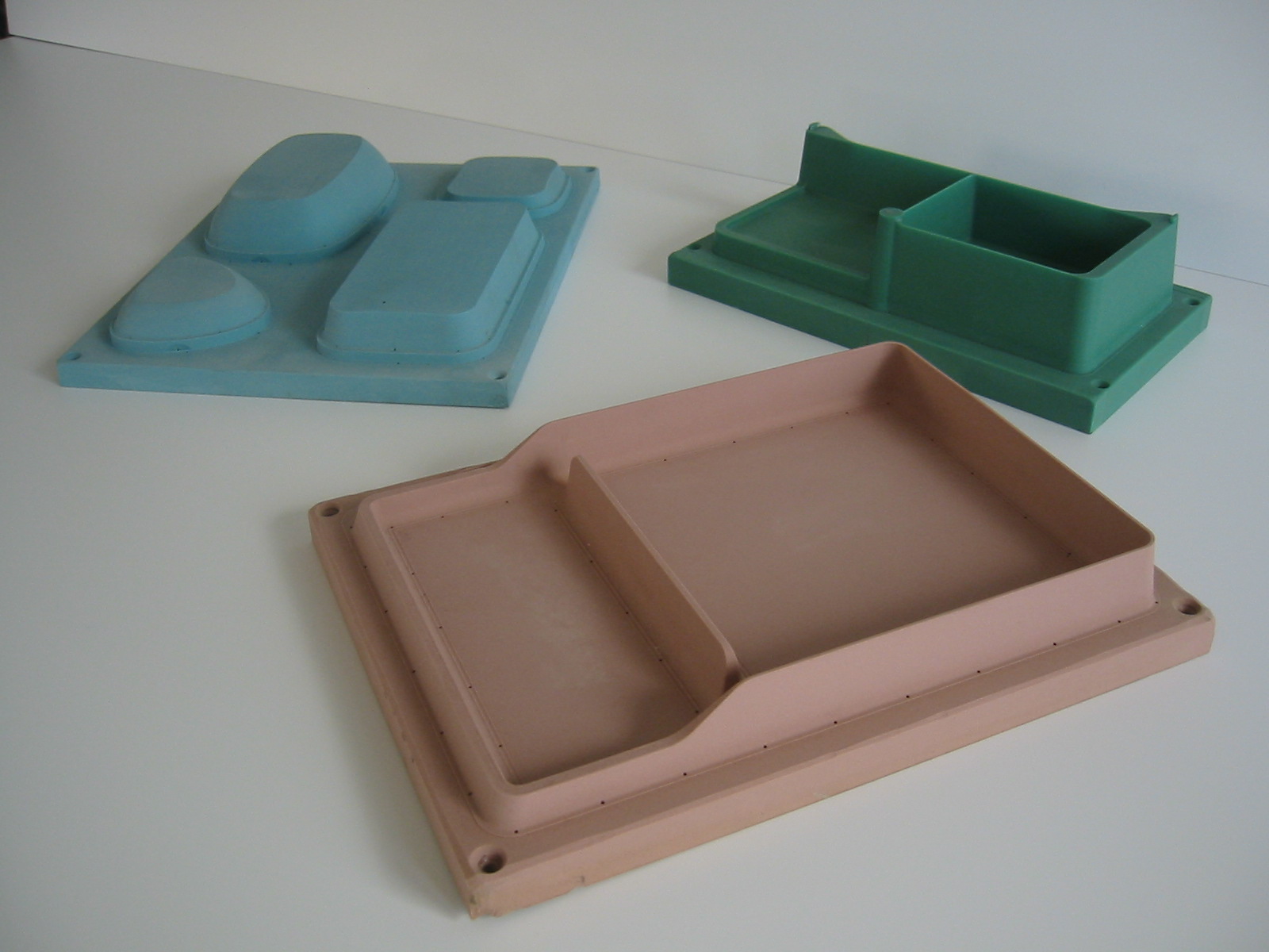 Prototypen Werkzeuge gefräst aus Modellbau Werkstoff unterschiedlicher Dichte.
