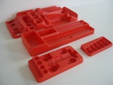 Einlagen für Werkzeugkästen hergestellt aus 2mm Polystyrol.